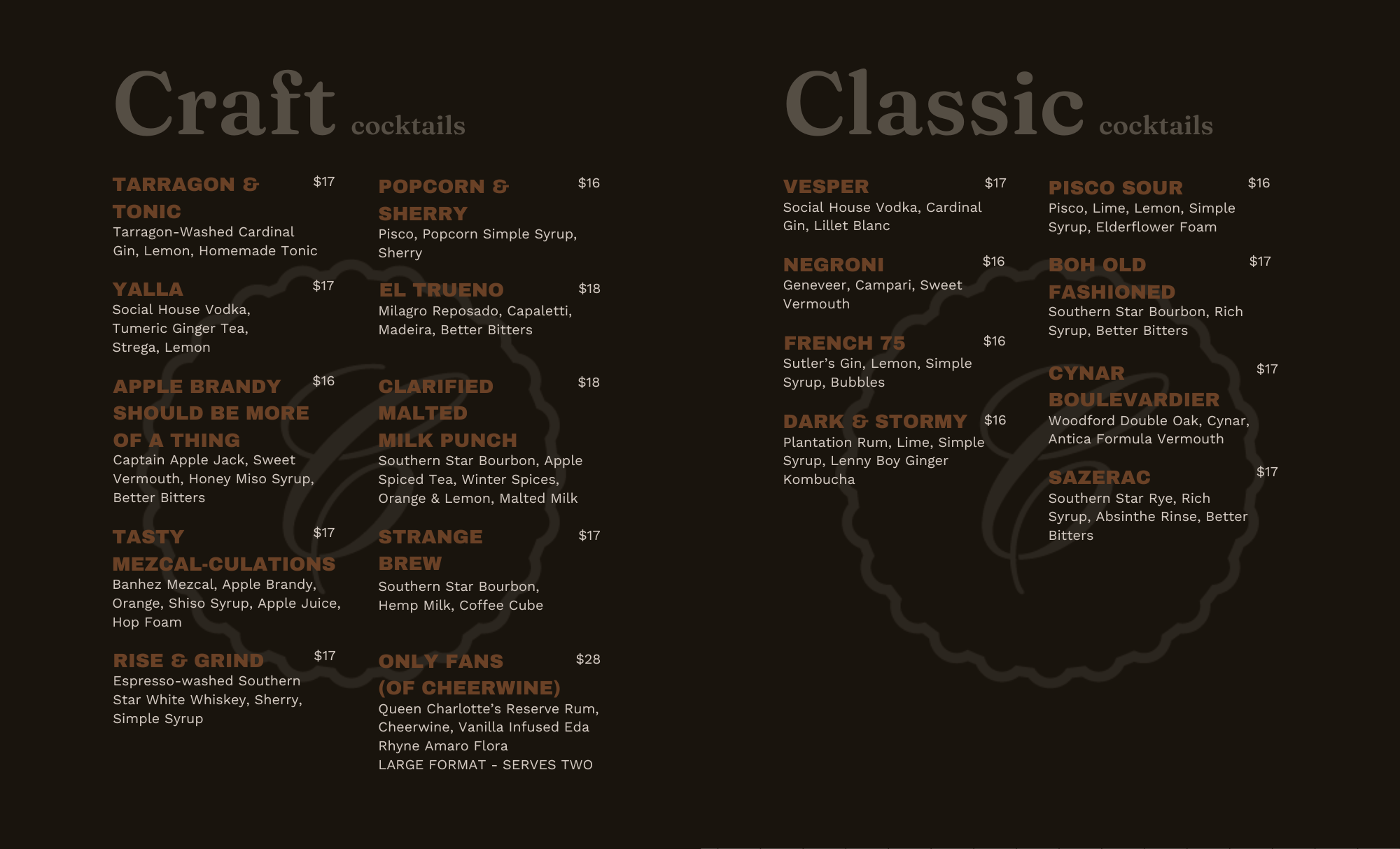 This project brings together a collection of marketing materials, menus, and mockups created for Folia and Chiefs. My work focused on extending each brand’s identity through digital and print design. I created cohesive layouts, refined typography, and developed visuals that support both the everyday communication needs and the overall brand story of each space.