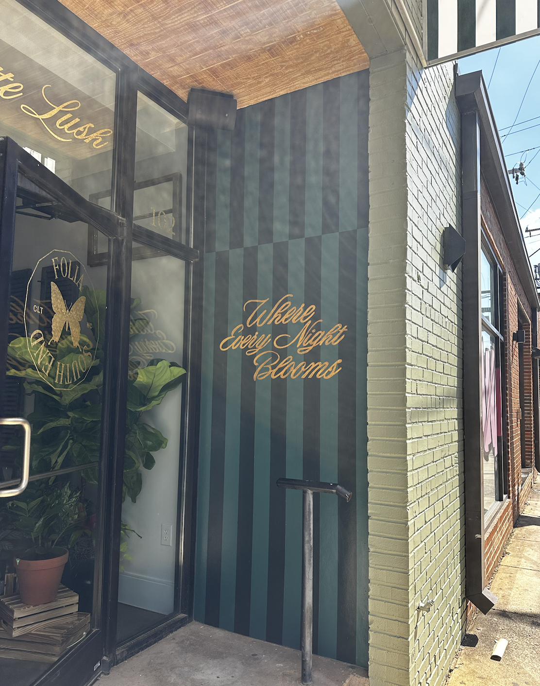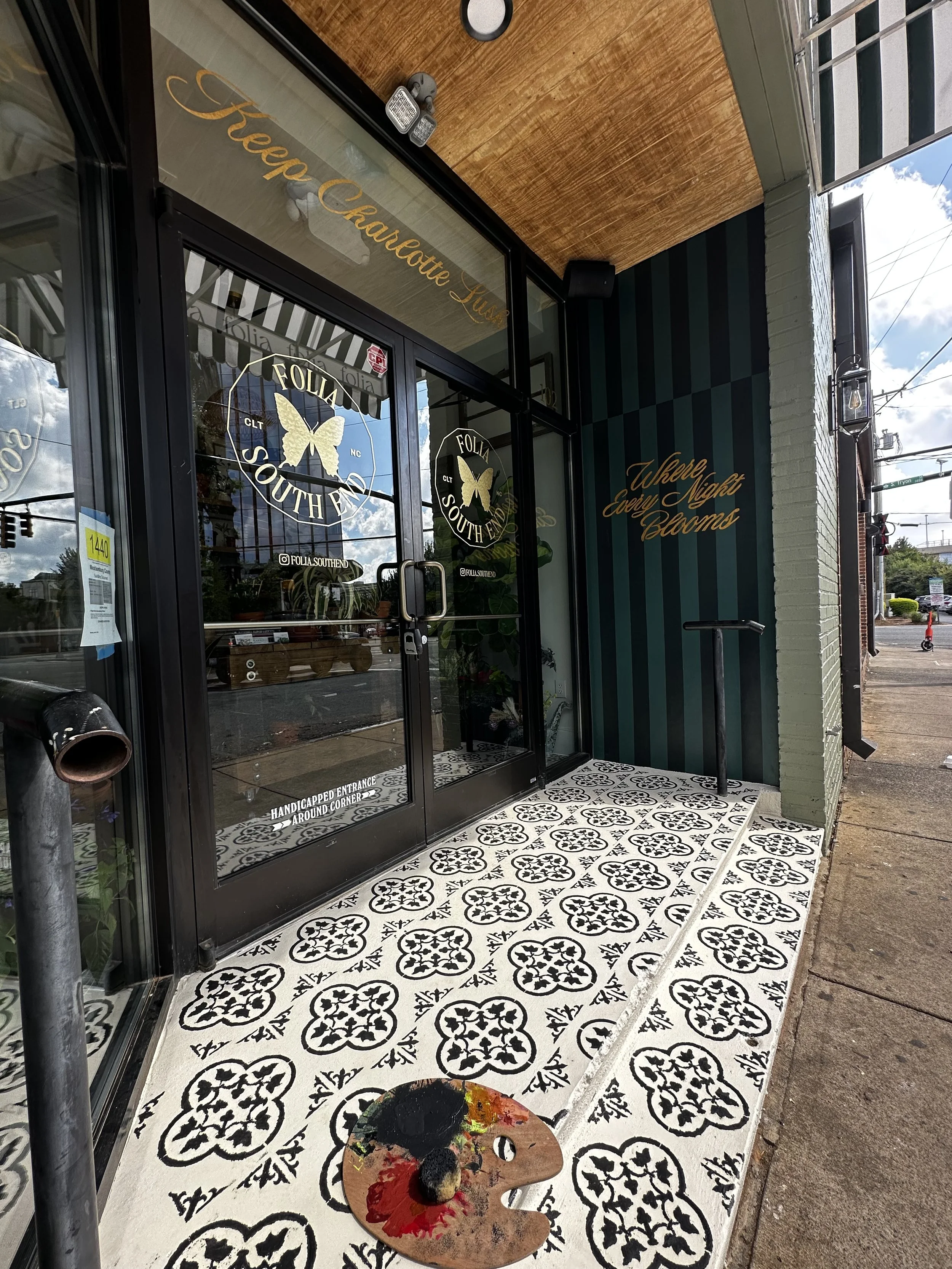 One of the first large-scale mural projects I had the opportunity to lead, this installation at Folia South End marked a pivotal moment in my creative journey. I designed the exterior mural, but painted two unique murals across the property. Each blending bold typography, botanical elements, and an immersive atmosphere aligned with the brand’s aesthetic. The phrases “Lush for Life” and “Where Every Night Blooms” became visual anchors, reflecting Folia’s lush, dreamlike identity and nighttime vibrance.